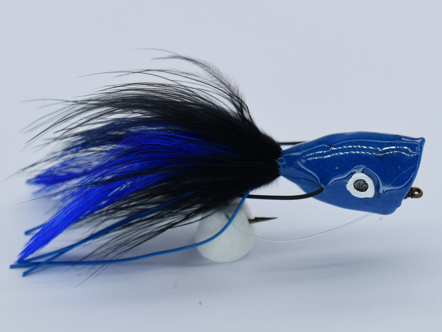 Popper Blue Black White Eye е повърхностна муха, предназначена за насочване към агресивни сладководни видове в Австралия. Завързан на здрава кука, този попър се отличава с впечатляваща синя, черна и бяла шарка с изпъкнало око, имитирайки плячка, която се плъзга по водната повърхност. Когато бъде изваден, той създава силно пръскане и мехурчеста следа, което го прави много ефективен при провокиране на удари от видове като треска Murray, barramundi и австралийски бас. Идеален за използване в тихи води и бавно течащи реки, живите цветове и шумното действие на този попър го правят неустоима цел за хищни риби. Предпазителят за плевели позволява уверено замятане в гъсто покритие, където тези хищни риби често дебнат.