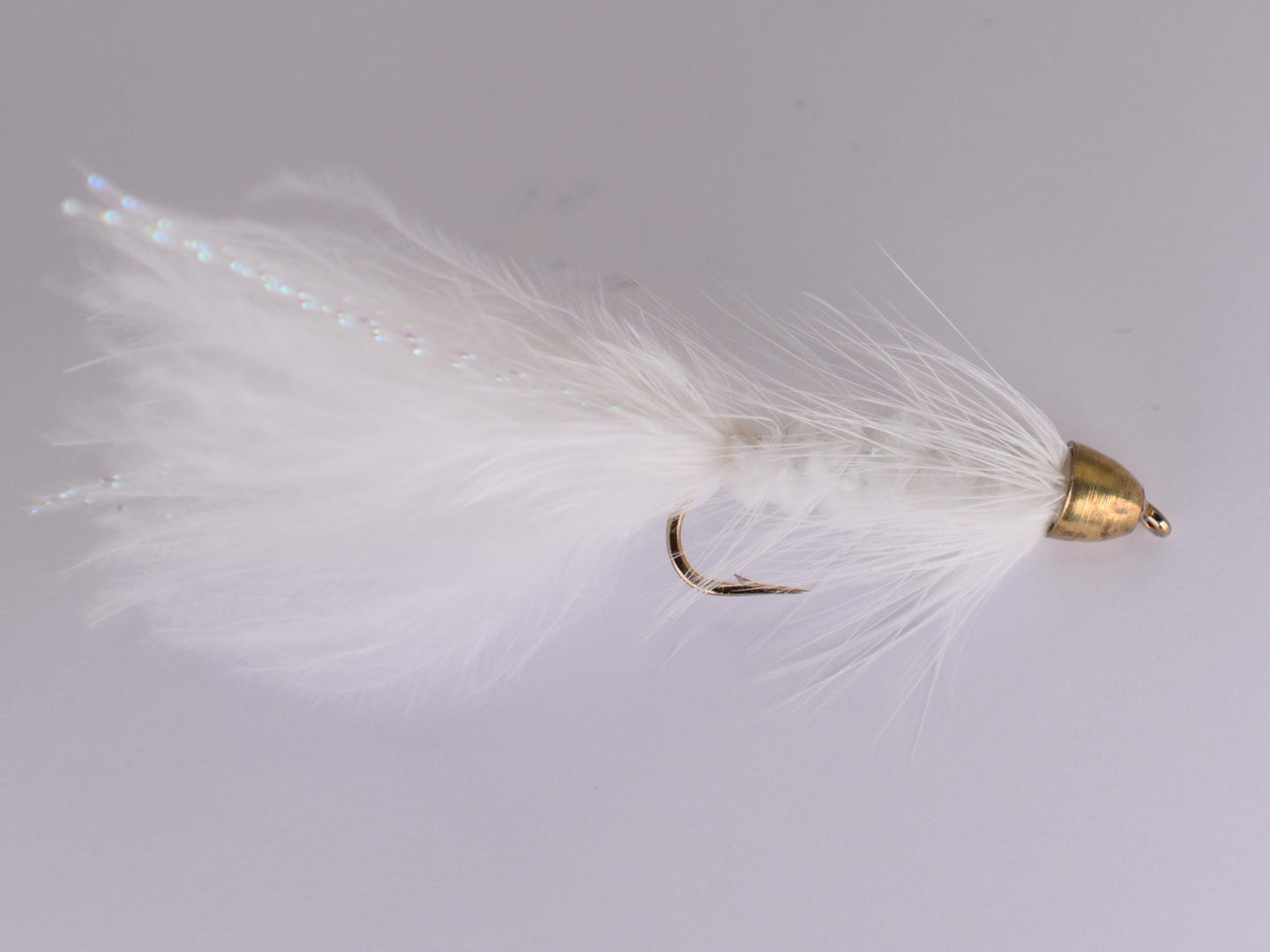 Conehead Woolly Bugger White е класическа и универсална муха, завързана на кука Daiichi, известна със своята острота и издръжливост. С ярко бяло тяло и конусовидна глава за допълнително тегло, тази муха потъва бързо, което я прави идеална за достигане на по-дълбоки води, където се хранят рибите. Опашката марабу и тялото на вълнистия бъг осигуряват реалистично движение, имитирайки различни водни плячки като мино и малки риби за стръв. Бялото оцветяване прави тази муха особено ефективна в чиста вода и при условия на слаба светлина, привличайки вниманието на видове като пъстърва, лаврак и други по-малки местни риби в Австралия. Тази муха се справя отлично както в тихи води, така и в реки, където нейните реалистични действия и дълбоки способности могат да предизвикат агресивни удари.