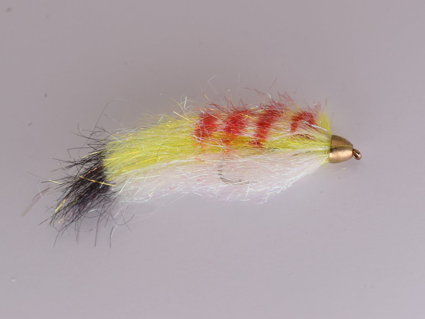 -35%DNA Conehead Minnow Irresistible Little Trout е модел на муха с стример, предназначен да имитира малки, цветни риби за стръв, включващ тяло, изработено от синтетичен материал с петна за реалистичен външен вид. Конусната глава добавя тежест, позволявайки на мухата да потъне бързо и да се движи с реалистично, стрелкащо се движение през водата. Живите цветове и шарката на петна имитират малка дъгова пъстърва, което я прави особено ефективна за привличане на хищни риби.