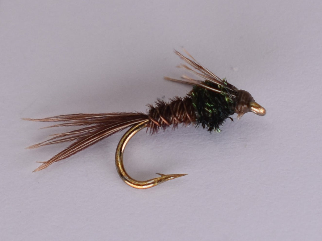 Pheasant Tail Nymph er et tidløst og alsidigt fluemønster, ekspertdesignet til at efterligne en række akvatiske nymfer, især majfluer. Denne flue er kendetegnet ved dens brug af fasanhalefibre til både krop og hale, hvilket skaber et naturtro, segmenteret udseende, der ligner de naturlige insekter. Fasanhale-nymfen er effektiv i både floder og stille vand, hvilket gør den til et godt mønster til målretning mod ørreder og andre ferskvandsarter. Dens naturlige farve og realistiske profil sikrer, at den forbliver en fast bestanddel i enhver lystfiskers flueboks, velegnet til en bred vifte af fiskeforhold.